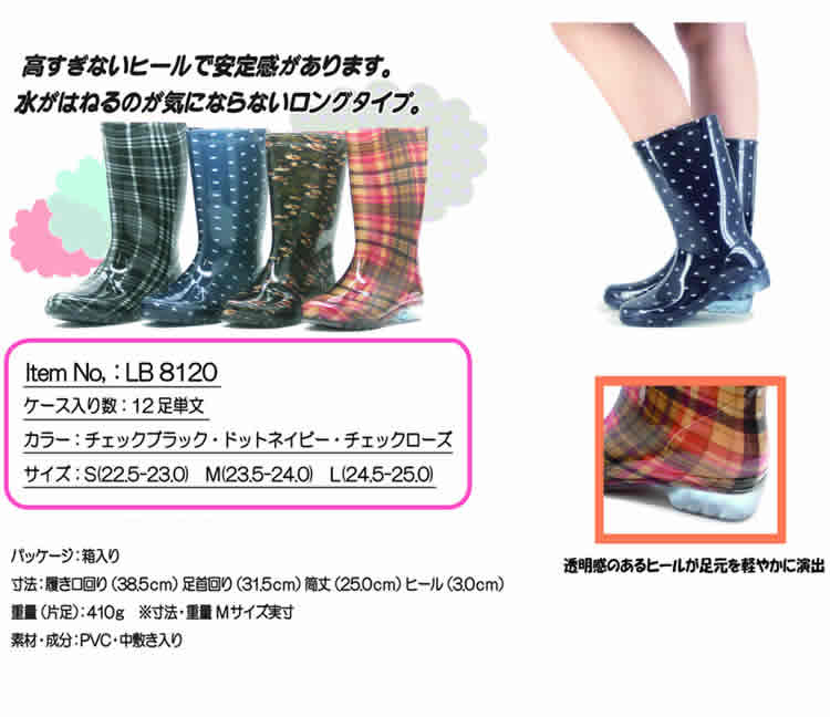 4種類と選べるカラー展開がウレシイ!! ロング丈なので足元を雨からしっかりガードしてくれます 素材 PVC サイズ(全て約) S(22.5-23.0cm) M(23.5-24.0cm) L(24.5-25.0cm) 履口周り:39.0cm 足首周り:31.5cm 筒丈:25.0cm ヒール:3.0cm 重量(片足):410g Mサイズ実寸 種類 靴・サンダル > 男性用シューズ・くつ 靴・サンダル > 女性用シューズ・くつ 靴・スニーカー・サンダル・シューズ > ブーツ 雨具・レインコートなど > 長靴 配送方法 注意点※必読 ●PCモニターの環境によって、色合い・形状の見え方が若干異なる場合が御座います。